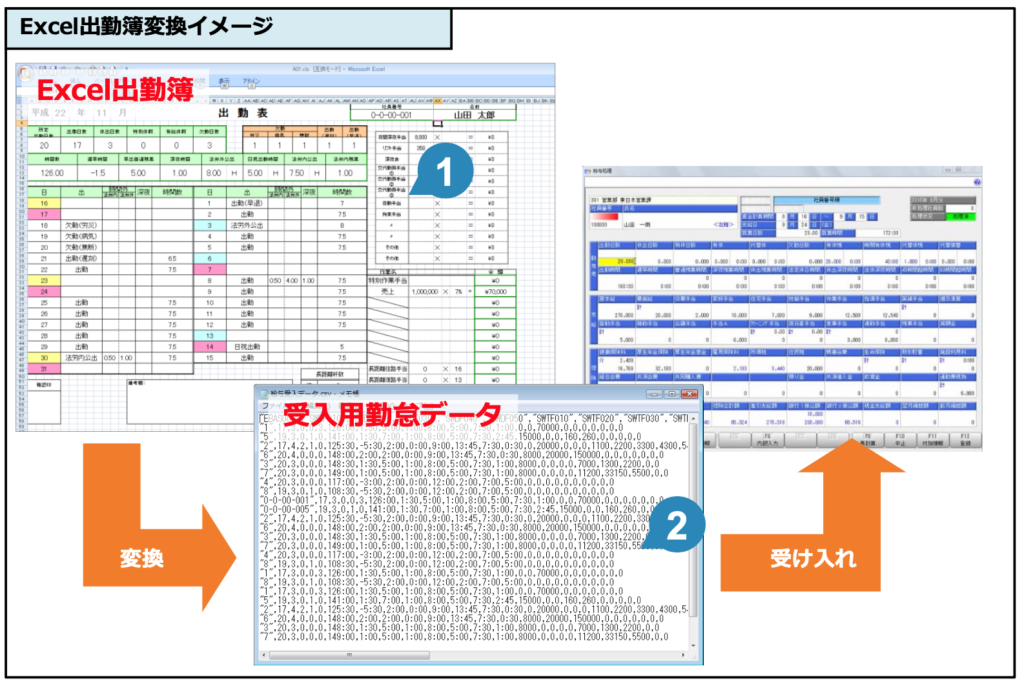 出勤簿のレイアウトは変更せず、データ変換が可能。