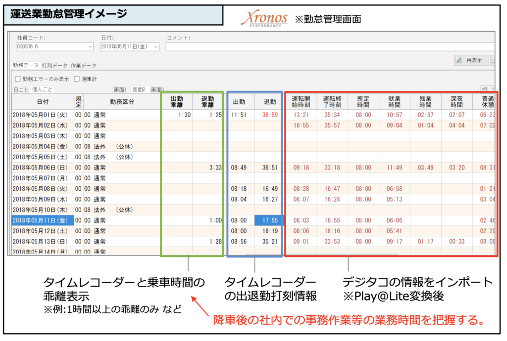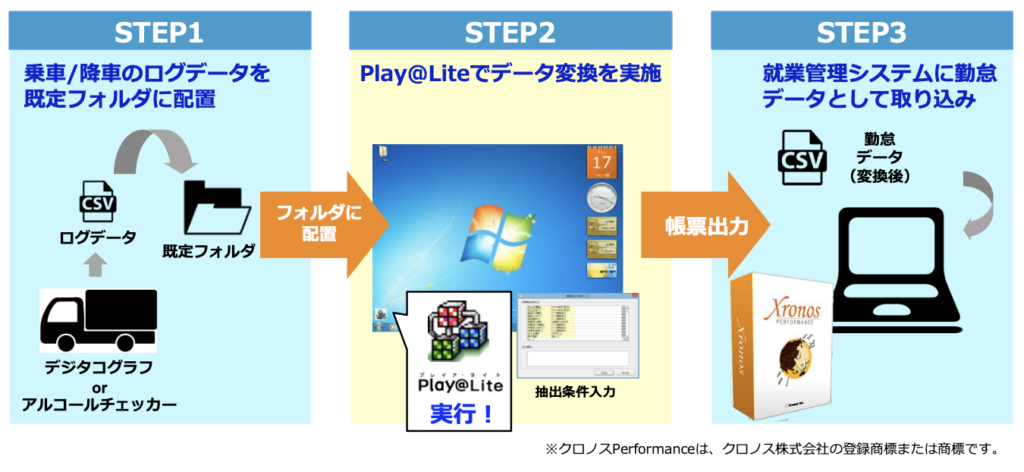 デジタコやアルコールチェッカーの情報を勤怠データに変換!