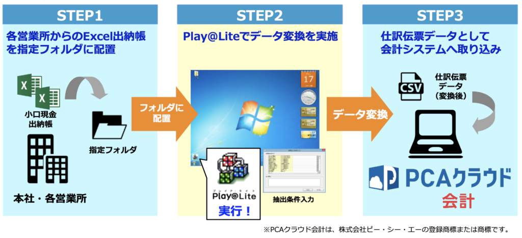 - Play@Liteで勘定科目別に自動集計し、仕訳伝票データへ変換