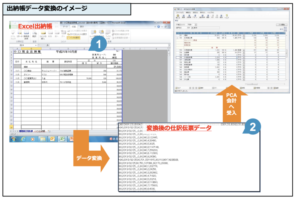 Excel出納帳を仕訳データとしてPCA会計に連携!