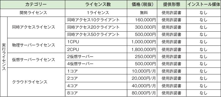 実行ライセンスは、ご使用になられる環境に合わせて最適なものをご選択ください。